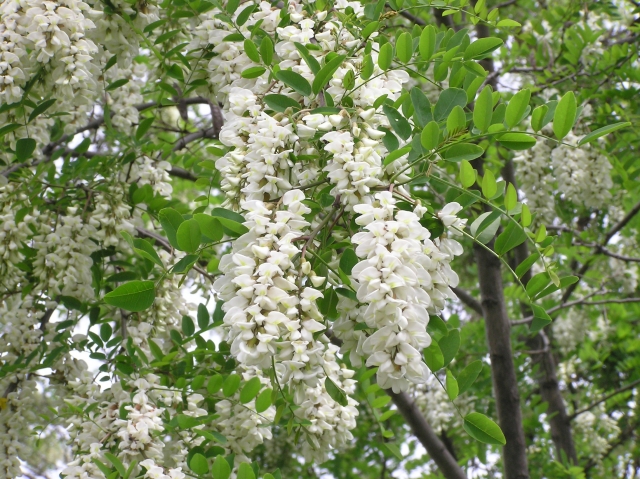 ニセアカシアは、強い芳香を放つ花で、花から上質な蜂蜜が採れることで知られています。広く日本に出回っている「アカシアはちみつ」は、アカシアではなくこのニセアカシアから採れたものです。